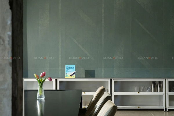 墙面应用:冠珠华脉岩板-敦煌印象-绢绘 矿石绿