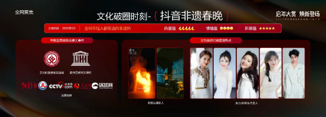 在近两年非遗文化热的背景下,2026年抖音将发起一场「非遗春晚」,由文旅部非遗司、联合国教科文组织、核心央媒共同背书,头部明星、抖音非遗头部达人携手国家级非遗传承人参与,将是一场年度最高规格的非遗大事件,届时还将联动米兰冬奥分会场,让传统文化海外破圈。对于有传统文化内涵、有出海传播需求的品牌,非遗春晚都是不可多得的顶配资源。