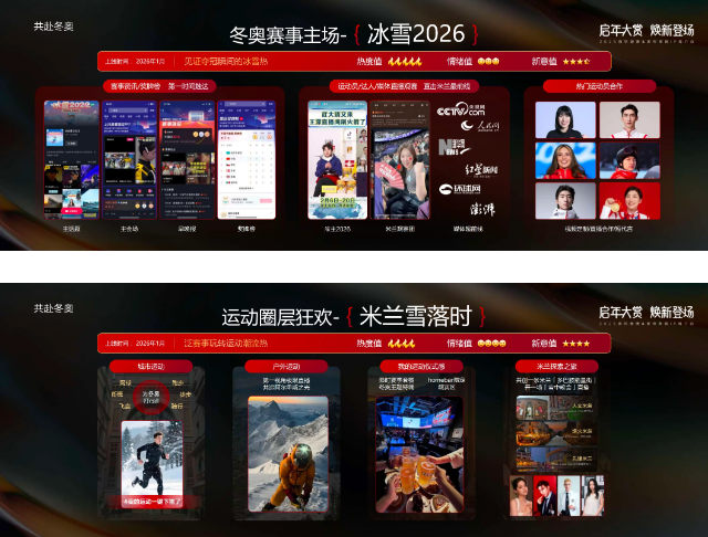 最后,马年春节还有一个大彩蛋,就是春节期间也恰逢米兰冬奥会举行,顶级体育赛事的话题热度、情绪浓度将与春节叠加,双顶流相遇将带来更具爆发力的情绪场景。