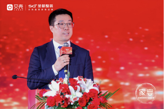 家宴开场,贝壳整装事业线整装东部区域总经理常承亮,首先代表圣都发言。他表示,圣都能在装修行业深耕24载、稳步前行,成为浙江乃至全国领先的整装企业,离不开千千万万圣都人一心钻研“家”的事业,更离不开每一位客户的选择与托付。“每一份信任,都是圣都前行的底气,每一次认可,都是圣都精进的动力,面对这些信任和认可,圣都也将坚持用更好的设计、更好的服务,以及更有品质的装修,来回馈大家。”