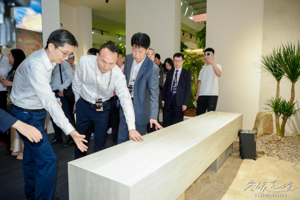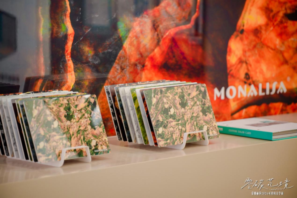 依托持续深化的技术成果,蒙娜丽莎相继推出零碳燃烧陶瓷薄板(砖)、零碳艺术陶瓷板等一系列产品,构建起覆盖墙地装饰、艺术美学、空间定制的零碳材料矩阵。本次展会,蒙娜丽莎零碳陶瓷板重磅亮相,凭借低碳排放、轻薄高强、质感高级等优势,成为21世纪绿色新材料的典范。同时,蒙娜丽莎首次展出的晶石板环保新材,以低耗生产、健康无醛、高通透质感,进一步拓宽了环保建材的边界,成为展会一大亮点。