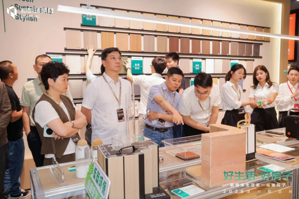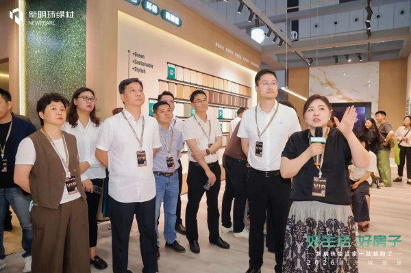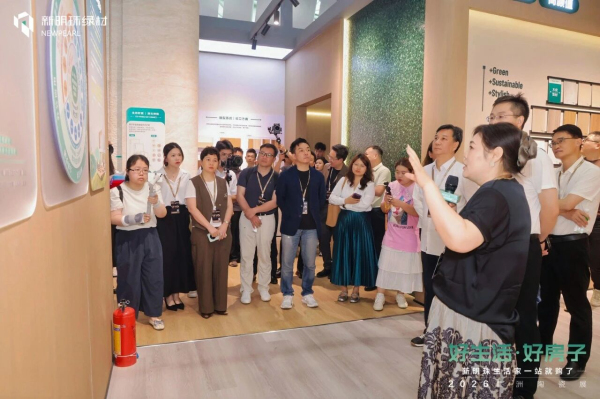 签约仪式后,在新明珠集团副总经理、协同设计院院长、新明珠绿材执行董事李莹女士带领下,与会嘉宾实地观摩了新明珠绿材展位的绿色材料矩阵+色彩系统专区+绿色工坊实验区+装配式场景等空间板块。