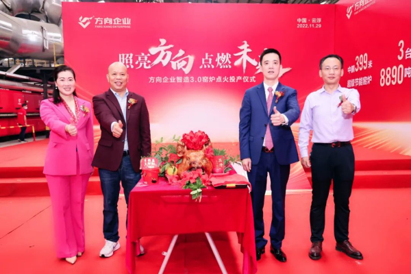 熊熊之火,点燃希望。随着一众主礼嘉宾共同将手中火种注入窑炉中,窑炉内火光闪耀升腾,不仅燃起了方向企业蓬勃发展的信心之火,也标志着公司生产制造实力实现跨越升级,开启发展全新篇章。
