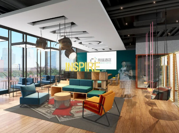 据了解,锦江酒店(中国区)旗下首个睿趣沙龙式中档生活方式酒店,陶瑞酒店锁定的消费者年龄分布在25-45岁的自由派新知青年群体,将大学校园文化以独特的现代感工业风设计呈现,将酒店客房、公寓和共享空间完美融合,并辅以睿智有趣的装置艺术,给新晋职场精英、创业者、高校师生提供极具启发性的居住、交流和共享空间。
