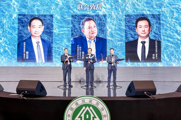 会议伊始,中国建筑装饰协会副会长兼秘书长张京跃,中装协住宅产业分会轮值会长、红蚂蚁装饰集团董事长李荣,中装协住宅产业分会轮值会长、箭牌家居集团董事长、总经理谢岳荣先生发表联合致辞。
