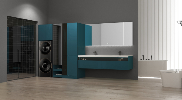 Tyla泰拉系列回归极简本质的设计,岩板+玻璃+木材的结合,结合功能需求把模块化独立元件进行系统搭配,盥洗台+工具柜+衣帽区+洗衣机柜组合为空间提供多种功能用途。色彩和轮廓去繁从简,注重光影与空间的关系,营造艺术美学与精神上的强大空间气场。
