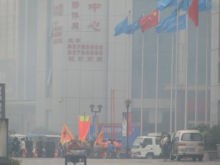 明明晴朗的天空却被鞭炮烟雾朦胧!瓷海国际今日隆重开业!