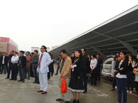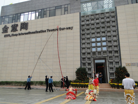 尾随舞狮队伍来到了金意陶展厅前,营销中心全体员工及公司高层领导人也早早的守候在一楼门前。随着KITO董事长兼总经理何乾亲自点燃花炮,震耳欲聋的礼炮声、喧天的锣鼓声同时响起,精彩的舞狮表演动起来,金意陶人的掌声响起来。这一片欢腾的气氛揭开了公司新春开业典礼的序幕,宣告KITO金意陶进军2010市场的步伐正式开启。
