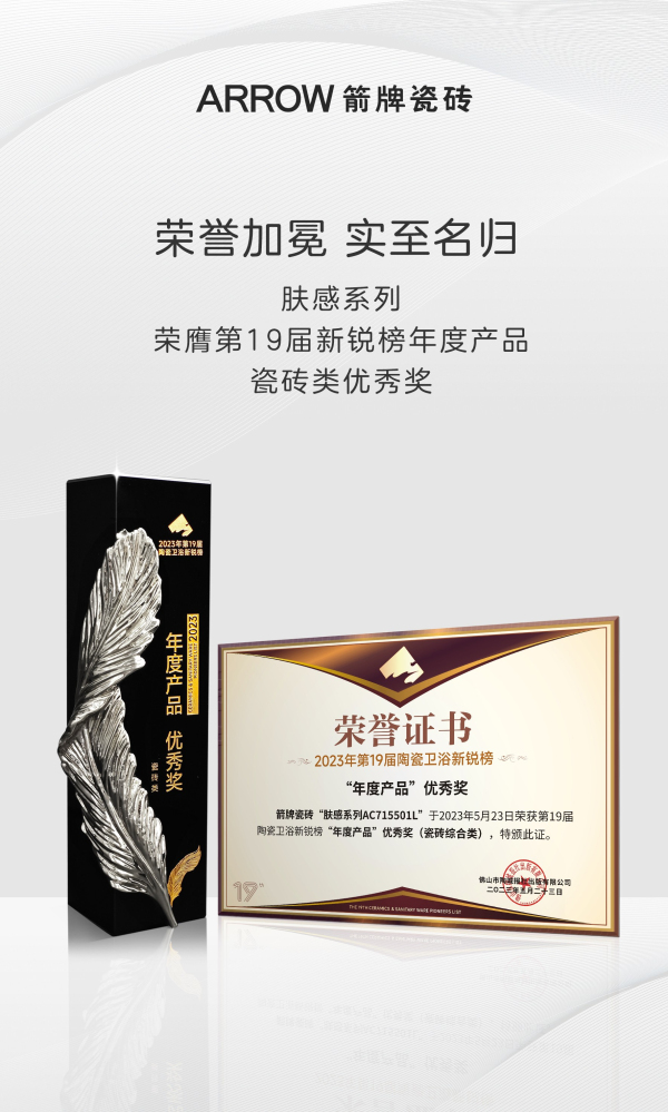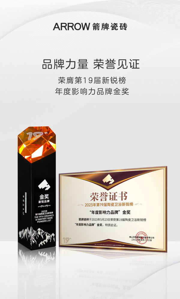 每一份荣誉既是肯定,亦是砥砺前行的力量!在不断变化的市场角逐中,箭牌瓷砖将继续以更高标准、更高质量、更高效率,提升品牌和产品竞争力,为行业发展贡献力量!