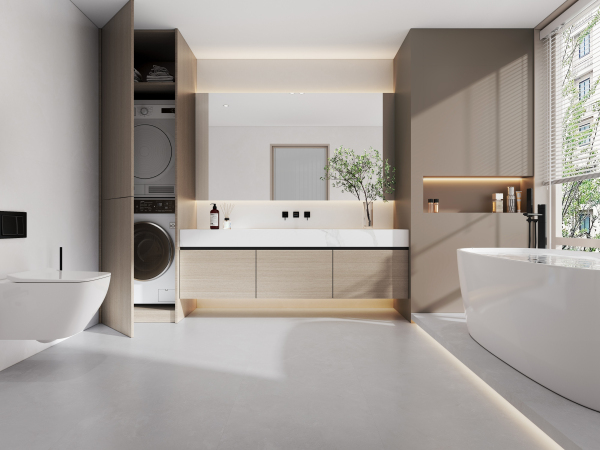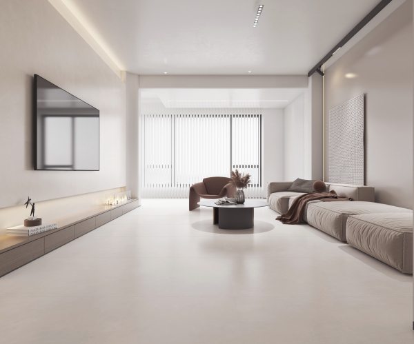 肤感系列根据时下流行的色彩趋势,采用冷暖平衡调色技术,调配出高级“奶油风” 色彩,恬静温柔,烘托出暖暖的家居氛围,大面积铺贴在家中提升空间时尚感,尽显温馨舒适。