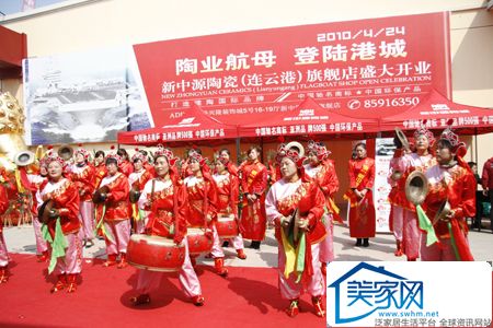 4月24日,连云港兴隆装饰城,新中源陶瓷旗舰店开业仪式在这里隆重举行,展厅前彩旗飘飘,锣鼓喧天、氢气球挂满现场每个角落,厂方代表、各大装饰公司设计师、中国建筑学会室内设计协会室内设计分会及当地装饰行业领导、周边各地经销商等齐聚一堂共同欢庆连云港旗舰店开业盛典。