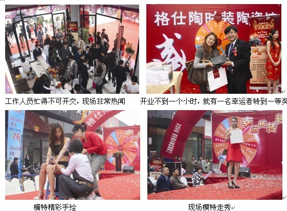 4月24日又迎来成都“时装陶瓷馆”盛大开业,开业当日,现场人头攒动热闹非凡,格仕陶瓷砖总部领导、成都当地设计师协会、工程客户,成都建材业界及成都销区其他代理商朋友,共计三百多人见证了本次开业盛况。作为格仕陶公司2010版最新终端标准的全面运用,装饰一新的专卖店以新颖的格子形象、奢华格调赢得了到场设计师及建材同仁的一致好评。同时,在终端消费者当中,耳目一新的设计更是让客户流连忘返,反映热烈。原来,仿古砖的展厅同样也可以设计的活泼且富有张力,也可以有亮丽的一面。闻讯而来的市民为了一睹格仕陶成都“时装陶瓷馆”的时尚风采,把店内围得水泄不通。面对人潮不断,工作人员及不辞劳苦地亲切接待的专业精神也实为可嘉。