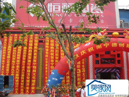 5月1日上午,位于南宁快环建材市场的德创建材•恒福文化馆门庭若市,锣鼓喧天,南宁恒福陶瓷文化馆开业仪式在此盛大举行,恒福陶瓷厂方代表、周边各地经销商代表、媒体界朋友与及众多消费者齐聚一堂,共享开业盛典。