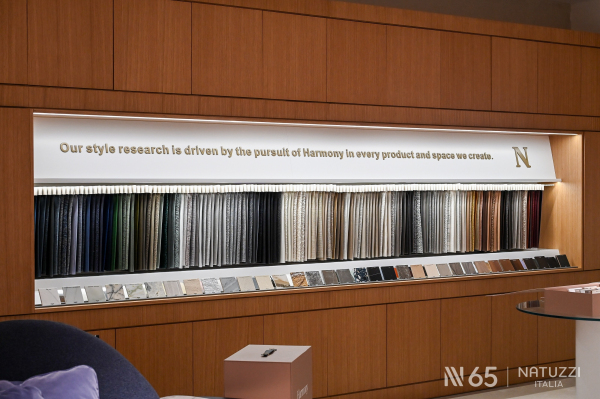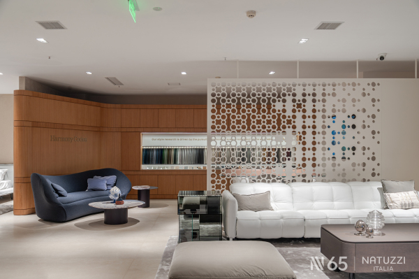 门店也重塑了面料展示区域,结合品牌丰沛材质筛选、运用与创造的「Harmony Codes」风格概念,将人性化的家具材质定制,软装搭配融为一体,尽显材质美学的深厚底蕴和优质服务。