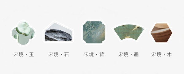 灵感溯源:系列设计题材源于宋代五大名品——玉、石、锦、画、木,将古典风物化为现代砖面纹理。