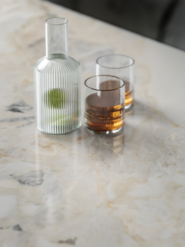 第二种是高透釉亮光面的设计,新一代高透釉技术,其通透感远超常规抛釉亮光产品,使得石材纹理更为逼真清晰,整体质感达到 “透、润、亮” 的和谐统一,是亮光产品中的品质之选。