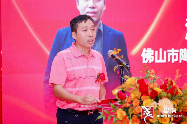 广东陶瓷协会秘书长王卫国上台致辞,他表示当前陶瓷行业面临 “功能细分 + 价值竞争” 新课题,“安全防滑” 成家居与商业空间核心需求。作为全国陶瓷产业核心阵地,广东转型关键在 “技术突破” 与 “产品迭代”,而碧虎不仅将“防滑”需求做到极致,更填补行业功能性陶瓷细分空白、树立品质标杆,肯定了其在家居安全领域的重大贡献。