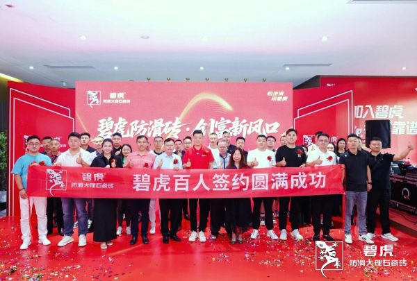 本次战略发布会期间,招商热度再攀高峰:现场举行百人签约仪式,新客户锁定签约 43 城,老客户续签不断。这一数一数二的陶瓷行业招商战绩,背后是经销商对碧虎 “品牌有卖点、防滑可体验、终端有帮扶”的认可,【签约即火爆】【开业就盈利】是碧虎品牌对客户最好的承诺,更是市场对防滑瓷砖赛道潜力的肯定。