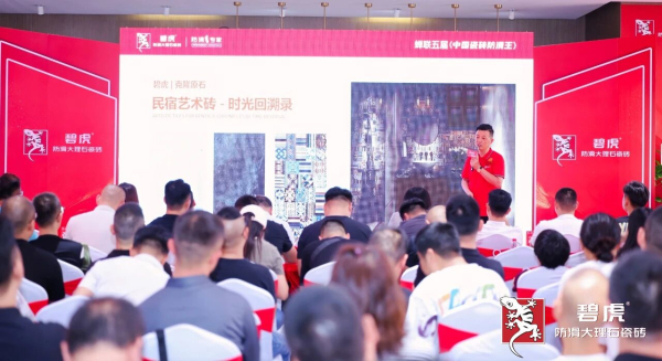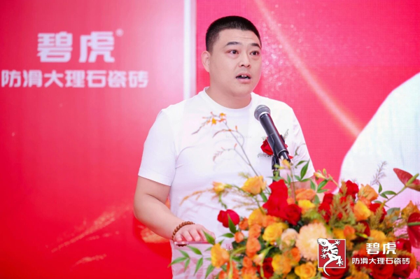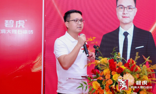 作为军人出身、深耕陶瓷行业 20 多年的防滑专家,碧虎创始人彭天奎全面回顾品牌发展历程,并聚焦碧虎防滑大理石、BIHU克隆原石核心成果总结发言。