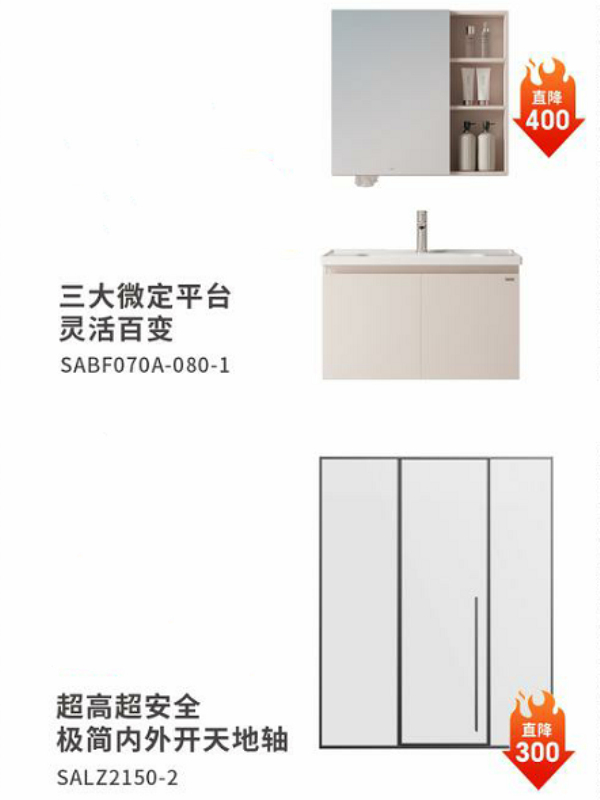 三大微定百变浴室柜、按摩养肤花洒、
