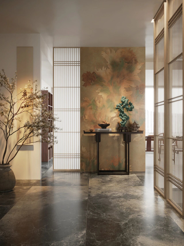 在谈及设计过程中的选材应用思考,尼克老师表示,过去东方美学设计会遇到“巧妇难为无米之炊”的问题,现在要什么材料都有,更看设计师功力够不够。同时,在新的材料不断涌现的情况下,能够脱颖而出,肯定还要倡导民族特色。这个时代来的刚刚好,在丰衣足食的情况下,我们在精神领域上可能要更加富足。冠珠瓷砖,也是让自己品牌有这种呈现,包括产品的质量,这都是一个好的现象。