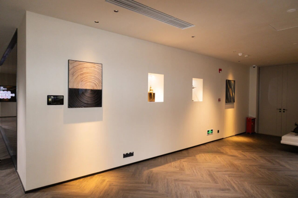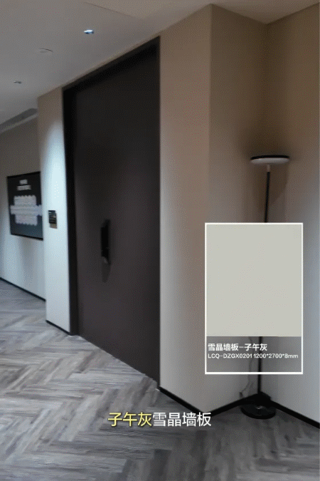 雪晶墙板“子午灰”以独特的打底板特性和精致布纹肌理,为智慧空间奠定优质基础。出色的打底性能为智能设备集成提供理想载体,安全防火、隔音降噪的特性,更能优化空间声学环境,在美学与实用层面为智慧空间提供双重保障。