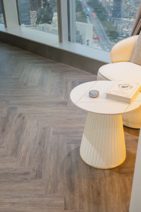 石晶地板“黑曜月纹”采用锁扣快装方式,安装便捷,省时省力;灵动的人字拼木纹,为空间注入温暖舒适的氛围;出色的耐磨防滑、抗冲击特性,完美适应各种高强度使用场景。
