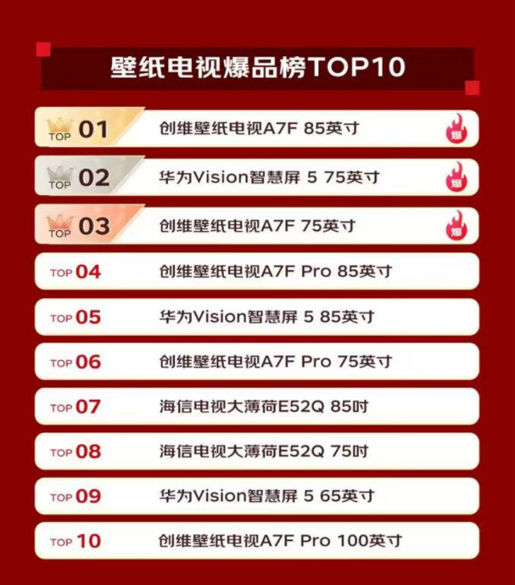 当下,电视行业“内卷”激烈,消费者需要集高颜值、高画质于一身的产品,让电视成为家庭空间的美学体现,同时拥有超出预期的画质体验。在激烈的竞争中,创维用过硬的产品实力持续领跑行业。今年双十一(10.9-11.11)期间,创维壁纸电视A7F系列全网销量突破3万台,横扫天猫“艺术电视”品类TOP 3。事实上,创维壁纸电视已连续三年稳坐京东、天猫“艺术电视”销冠宝座,并在前十中占据多个席位。创维壁纸电视到底做对了什么?为什么能获得如此亮眼的成绩?