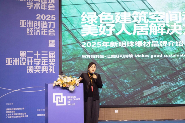12月27日,2025亚洲城市与建筑学术年会暨第二十三届亚洲设计学年奖颁奖论坛及典礼在广州南方学院举行。作为年度战略合作单位,新明珠绿材与来自全球的设计师、学者、政府部门及产业界代表共聚一堂,围绕设计教育、产业创新与可持续发展展开深度对话。