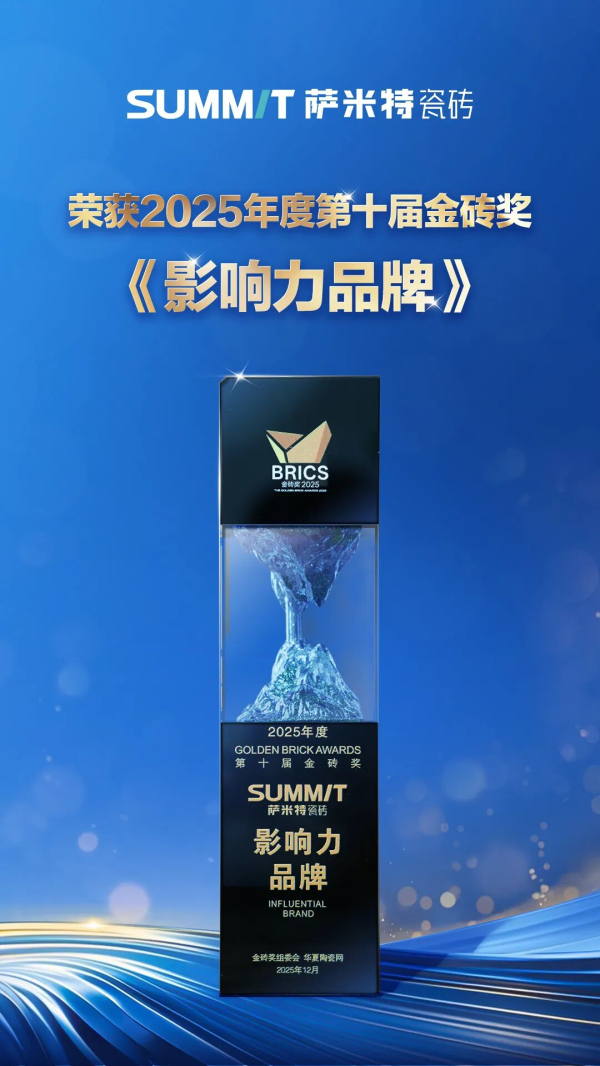 凭借全球化战略视野、持续领先的产品创新力以及广泛的市场影响力,萨米特瓷砖在众多品牌中脱颖而出,荣膺2025年度“影响力品牌”称号。这一荣誉印证了萨米特在行业转型浪潮中的引领作用,也彰显了萨米特在全球化布局中的强大竞争力。