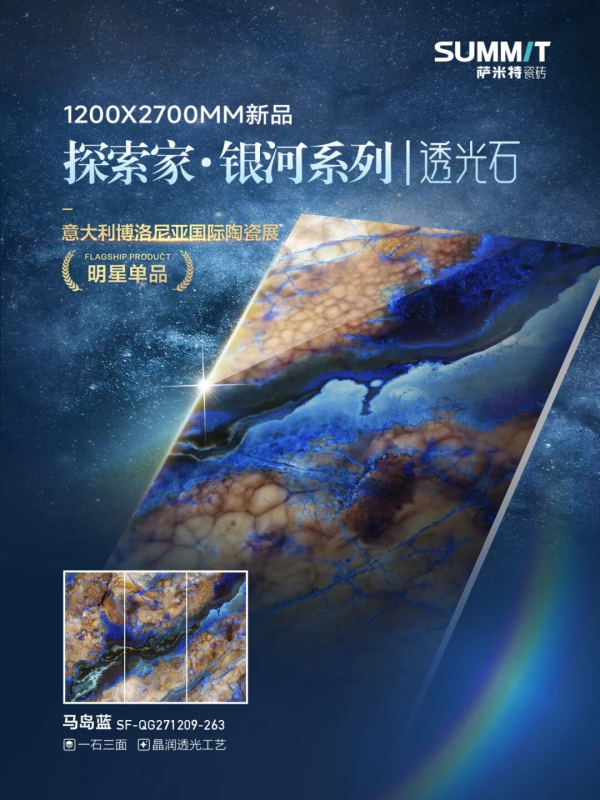 萨米特瓷砖探索家·银河系列以卫星遥感影像中的地球宏阔地貌为灵感源泉,将天地山河的磅礴气韵凝于方寸砖面。依托前沿晶润透光工艺,以高清通透干粒釉料科学配比为基底,成功打造“通透质感、立体肌理、星河光韵”三重高阶美学效果,让瓷砖超越装饰本身,成为承载自然艺术与科技力量的空间臻品。