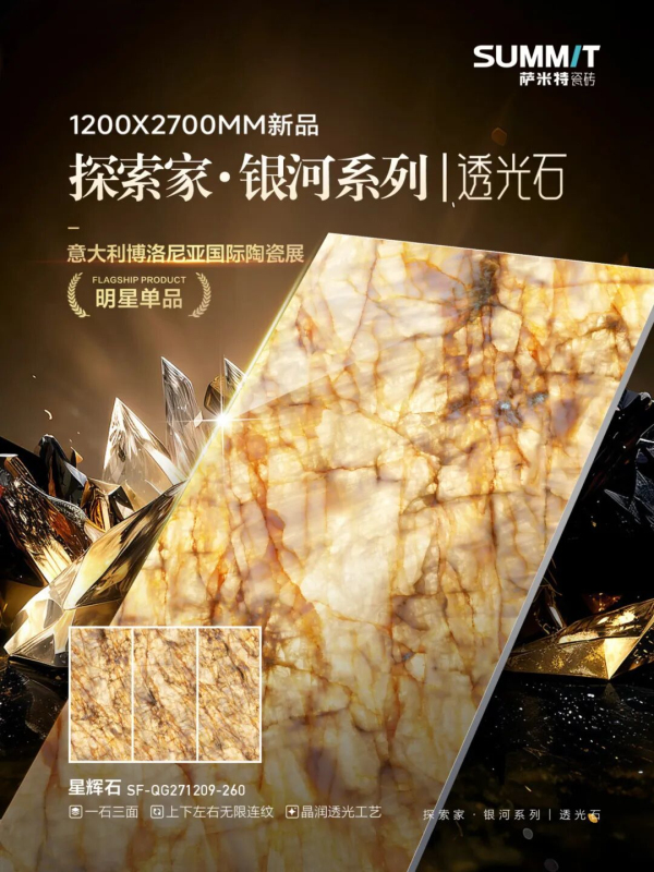 近日,萨米特瓷砖探索家・银河系列凭借卓越的产品表现力,在全国人大会议中心举办的2026建筑装饰材料流行趋势发布大会暨2025京闻・创响杯建筑装饰产品设计大赛颁奖典礼上,荣耀摘得“产品设计 - 建筑陶瓷三等奖”。