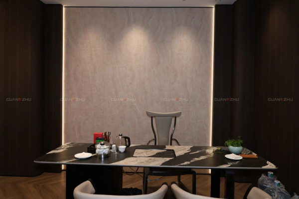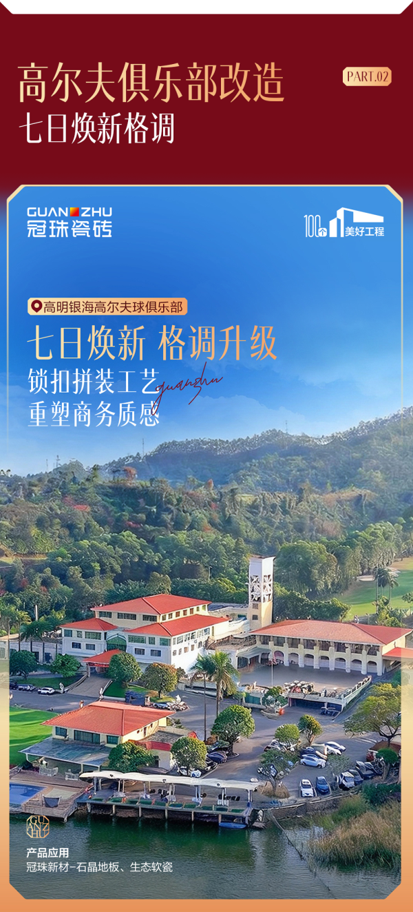 高明银海高尔夫俱乐部的焕新项目,则是一场对极限工期与卓越美学双重要求的严格履约。冠珠新材通过其多材质系统化融合方案,在短短七天为项目升级打造出高端商务接待空间。
