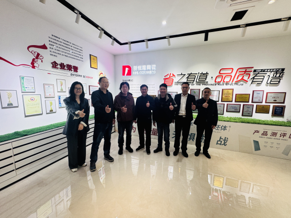 在蒙娜丽莎集团,调研团队重点考察了其3mm超薄陶瓷板生产线与绿色制造体系。作为行业技术标杆,蒙娜丽莎在超薄陶瓷领域实现"大、薄、轻、硬、韧"技术突破,产品强度提升40%的同时能耗降低30%以上。其光感变色陶瓷、长余辉发光陶瓷等创新产品,通过智能材料技术实现动态装饰效果,展现出材料科学与建筑美学的深度融合。更值得关注的是,蒙娜丽莎建成全球首条陶瓷工业氨氢零碳燃烧技术量产生产线,实现燃烧过程二氧化碳零排放,综合能耗降低40%以上,为陶瓷产业绿色转型树立了标杆。座谈中,双方就智能制造人才培养、绿色工艺标准融入教学等议题达成共识。