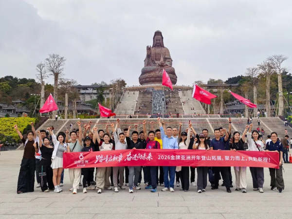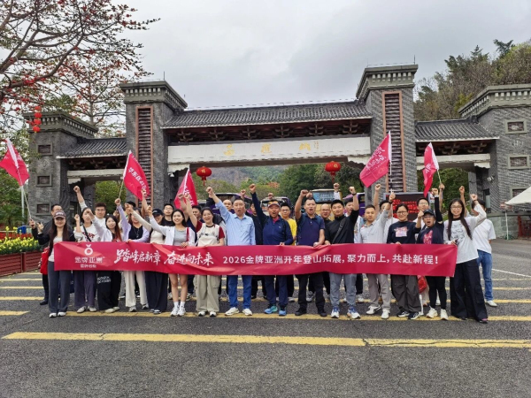 2月26日,“踏峰启新章,奋进向未来——2026金牌亚洲开年登山拓展”在国家5A级景区西樵山燃情启幕。金牌亚洲营销中心总经理韩波率全体人员齐聚山脚,以攀登之姿开启新一年的奋斗征程,用汗水诠释“坚韧、协作、奋进、共赢”的品牌精神。