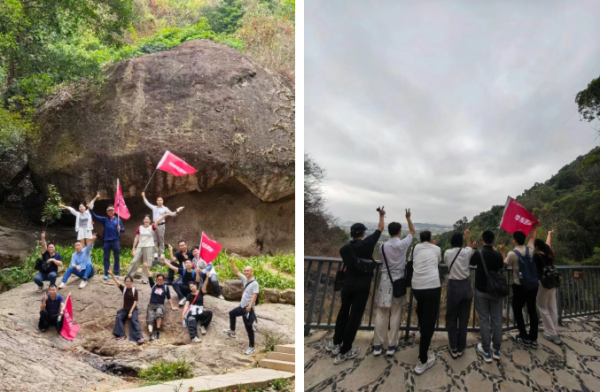 随着一声令下,全体人员以小组为单位,沿蜿蜒步道有序进发。此次登山路线贯穿西樵山精华景点:从清幽的樵溪谷出发,途经云岩古寺,探秘奇石林立的九龙岩,勇攀视野开阔的鸡冠峰,穿过清雅的四方竹园,再到庄严肃穆的宝峰寺,最终直指南海观音文化苑。