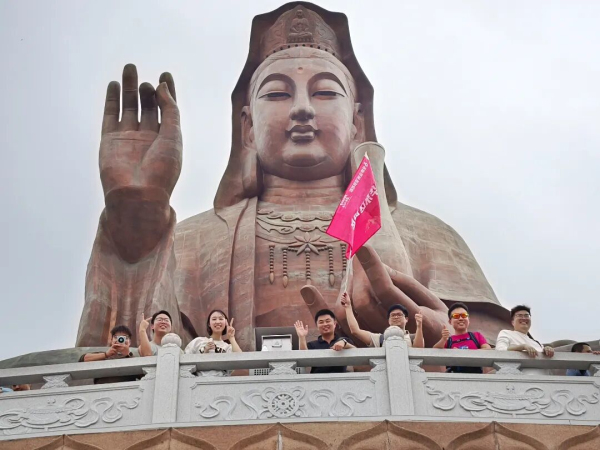 历经近3小时攀登,全体人员陆续抵达终点南海观音文化苑。俯瞰来路,蜿蜒山道恰如过去一年的奋斗轨迹;清风拂面,正是拼搏后最美的奖赏。攀登的意义不仅在于终点,更在于途中的坚持与陪伴;市场竞争如同登山,唯有同心同行,方能共克时艰,共享顶峰风光。
