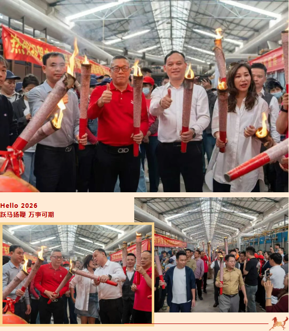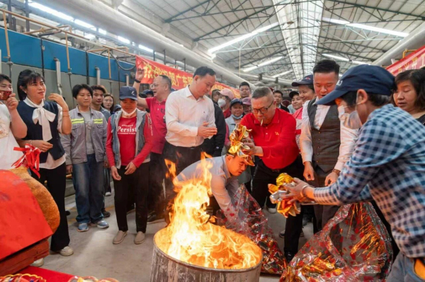 吉时点火旺窑启,新程顺遂势如虹。众人精神饱满、意气风发,手持火炬共同点燃窑炉薪火。烈焰升腾、礼炮齐鸣,现场掌声不断。熊熊窑火不仅照亮了肇庆基地的生产车间,更点燃了强辉人新一年的奋斗热情。
