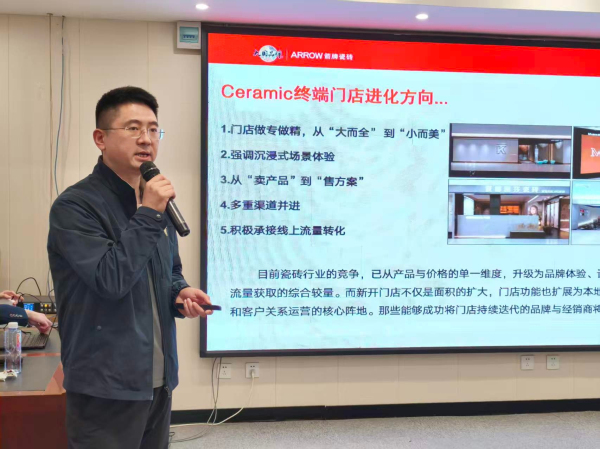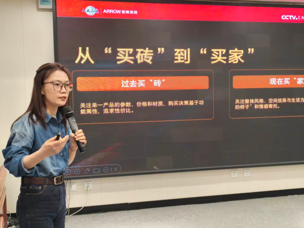 品牌市场部经理高幸系统阐述了箭牌瓷砖2026年向“全场景空间砖配大师”升级的品牌战略,深入解读了如何让“大国品牌”成为成交利器,并为核心产品提供了销售方法论。