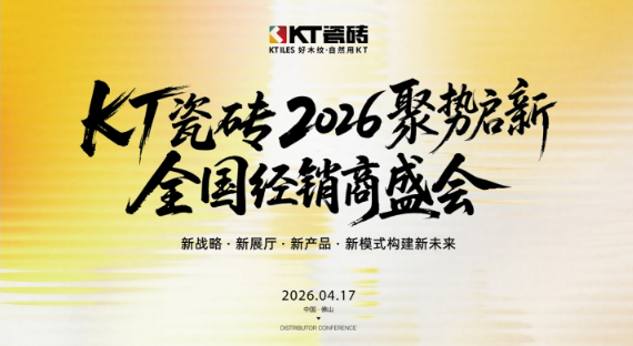2026 年 4 月 17 日 - 18 日,佛山陶博会行业盛会期间,深耕高端木纹砖赛道 22 年的 KT 瓷砖,于佛山总部举办 2026「聚势启新」全国经销商盛会。本次盛会以 “新战略、新展厅、新产品、新模式构建新未来” 为核心,同步完成总部 5.0 旗舰展厅的正式亮相,吸引全国 200 余位核心经销商、顶尖设计大咖、行业权威媒体及家居流量博主齐聚现场,成为本届陶博会木纹砖细分赛道的核心焦点事件。