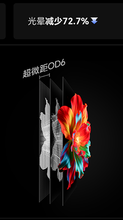 超微距OD技术带来的不只是电视形态的突破,更是一场对画质的“底层革新”。OD缩短后,背光光线会被聚拢,这一改变能够直接提升画面亮度,使对比度和光影层次感更加分明,同时还能大幅削弱亮部区域周围的光线溢出现象,无论显示人物还是景物,都会更加清晰立体,不会出现光晕遮挡和融色的问题;搭载超微距OD 6技术的创维A10H系列,光晕减少高达72.7%。只有画面提亮了、更干净了,才能看什么都真实。