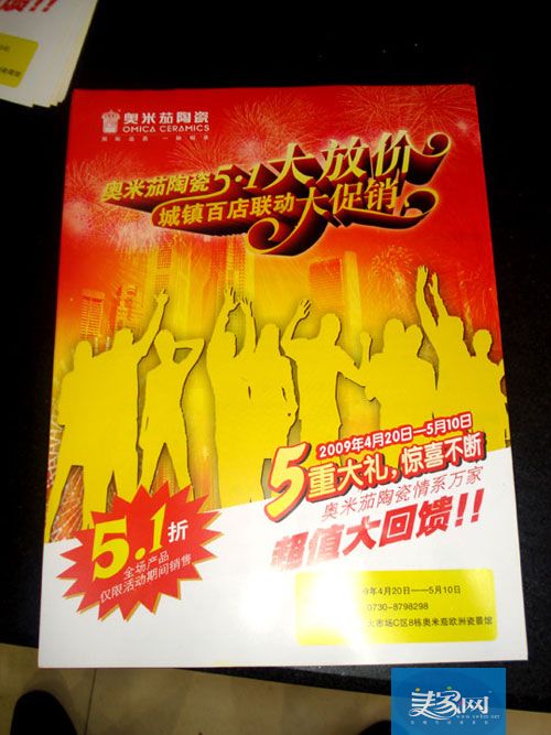 在促销的活动中经销商也是积极配合厂里的五一促销方案。户外广告上,在建材市场上有一个25m×5m的特大横幅,路灯上也安排了很多广告。在的士车身上也贴了很醒目的广告;广播上,也安排了岳阳人民广播电台两个频道报道五一促销活动;传单上,印了几万份安排一些大学生在促销其间派发。我们也建议经销商在电视广告,夹报上面也要多一些做功夫。