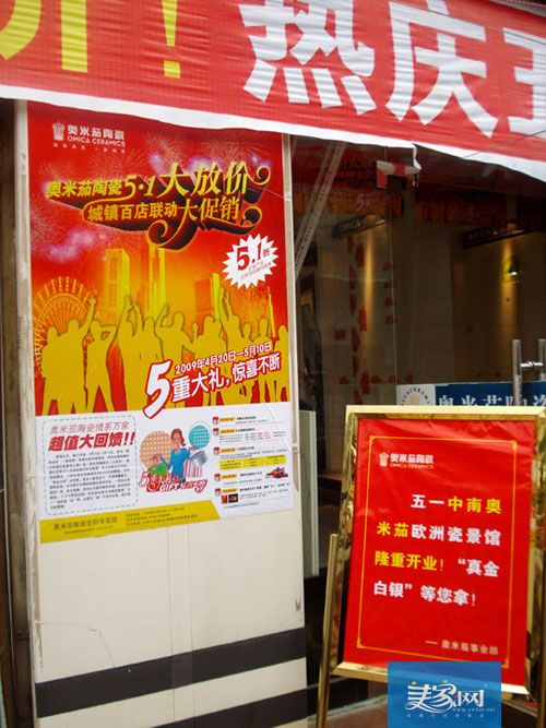 岳阳新的奥米茄专卖店位于中南建材大市场内。位置在整个建材市场的中部。中南建材大市场在岳阳的郊区,离市区不远。人流量一般。其中金欧雅,金陶名家,欧美等品牌在那里也有店面,其他厂的品牌新中源,新明珠等也有专卖店,但是东鹏,诺贝尔等高档品牌的专卖店倒没多见。这也说明了该建材市场主要面向的消费人群是中低消费水平的。各大中小品牌也进驻了该建材市场,总的说来该市场还是比较成熟的。