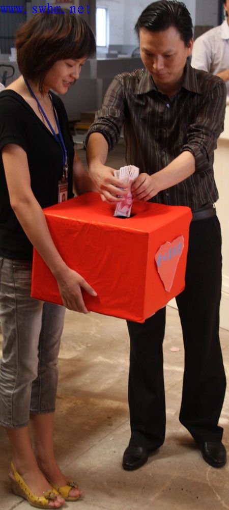 经过广泛宣传,层层发动,本次爱心募捐活动得到了该司干部和员工的热烈响应和积极参与。募捐活动上,胡董事长亲自带头,奉献爱心10000元,得到了在场人员的热烈掌声,将爱心募捐活动推向了深入。随后,各级干部和员工慷慨解难,捐献善款。