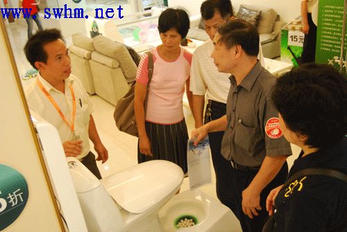 同时,展厅内的许多产品可以在现场进行示范体验,厂家也配有专业的工作人员进行演示和讲解。如吉美的节水型马桶,配有专业试水台,消费者可亲自看到测试的100个小球,仅用3升水便可哗啦啦地全数冲落,现场团友看到实实在在的效果后,对产品的质量表示认可,纷纷下订签单。