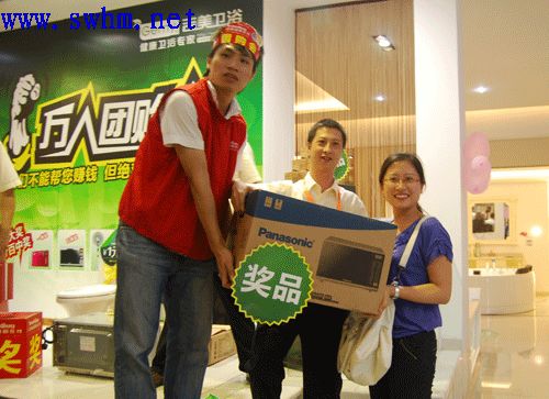 吉美的消毒浴室柜、超静音淋浴房、理疗按摩浴缸、恒温舒缓型明杆淋浴器、隔臭防虫自洁地漏,整套的健康卫浴产品,对追求自然健康的现代人来说,颇具吸引力,再加上合理的产品价格,也受到在场团友的热捧。