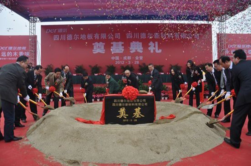 春风送暖入成都。3月28日,四川省成都成阿工业园区内锣鼓喧天,由德尔国际家居股份有限公司投资建设的四川德尔地板有限公司和四川德尔新材料有限公司项目奠基仪式在这里隆重举行。德尔家居董事长汝继勇先生介绍了项目基本情况。中国林产工业协会副会长、纤维板委员会理事长钱小瑜致辞。各级政府及相关部门领导、德尔管理层,各界嘉宾及员工才参加了奠基仪式。