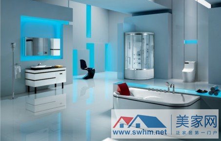 除此之外,彩色卫浴装修风格同样也有一定的市场,缤纷的色彩可以给卫生间带来精彩的效果,亮丽的深蓝、黄色、浅浅的绿色、浪漫的紫色、艳丽的红色、鹅黄色等,都有业主采用。如果色彩搭配得当,绿色可以让人宛若置身大自然之中,艳丽的红色则可营造出时尚的氛围,浪漫的紫色,仿若置身花园中。