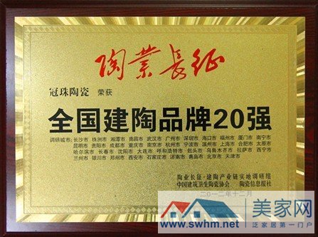 2012年12月29日下午,陶瓷行业首个《陶业长征•市场报告》白皮书和全国建陶品牌20强名单新鲜出炉,新明珠陶瓷集团旗下品牌冠珠陶瓷和萨米特陶瓷凭借完善而强大的终端网络建设和品牌影响力强势上榜,荣膺“全国建陶品牌20强”称号。