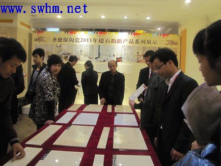 2011年圣德保新品闪亮登场,本次推出四大系列新产品:皇家骑士 S6微晶石系列、挪亚方舟抛光砖系列、LC瓷质薄砖以及3D数码喷墨瓷片闪亮登场。别出心裁的现场展示让经销商大饱眼福的同时更加了解了产品展示与应用。在12日下午,新品鉴赏会上,由产品研发人员详细地为与会人员介绍了新产品。旁征博引,对建陶产品趋势的准确把握和对新品的特性、卖点、应用等透彻的分析令与会人员大获裨益。随着,圣德保几大系列新产品的推出,为公司2011年业绩提升打下坚实基础。